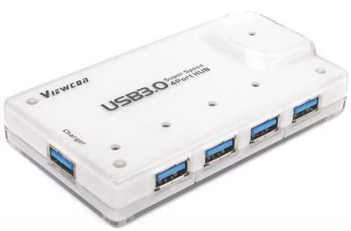 Viewcon VE 323 - практичний хаб на 4 порти з підтримкою USB 3.0. Важливим доповненням є блок живлення, який йде в комплекті. Одночасно до нього можна під'єднати 4 пристрої та насолоджуватися швидкою роботою.