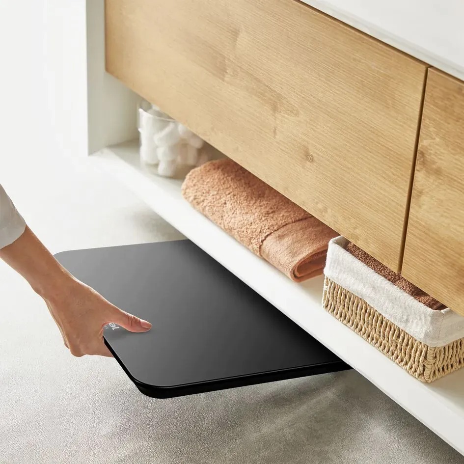 Компактний і стильний дизайн дозволяє зручно зберігати ваги навіть у невеликому приміщенні, а сучасні кольори та естетичне оформлення роблять їх гармонійним доповненням будь-якого інтер’єру. Крім того, ваги готові до використання одразу після покупки — у комплекті вже йдуть дві батарейки типу AAA.