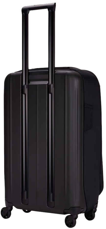 Основні характеристики валізи Thule Subterra вражають своєю продуманістю та якістю. Корпус оснащений міцним литою полікарбонатною задньою панеллю, яка ефективно поглинає удари під час транспортування, забезпечуючи довговічність. Матеріал — комбінація 800D нейлону та поліестеру з водовідштовхувальним покриттям — гарантує стійкість до вологи та пошкоджень. Телескопічна ручка з V-подібною конструкцією та тихі обертові колеса дозволяють легко маневрувати валізкою в аеропортах чи на міських вулицях. Крім того, вбудований слот для ID-картки спрощує ідентифікацію багажу, а високоякісні блискавки YKK додають надійності в експлуатації.