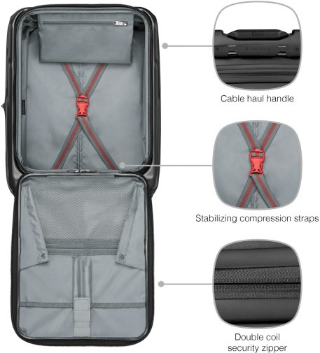 Для додаткової ідентифікації передбачено вбудований лоток для посвідчення особи, де можна вказати ім’я та адресу власника у разі втрати багажу.