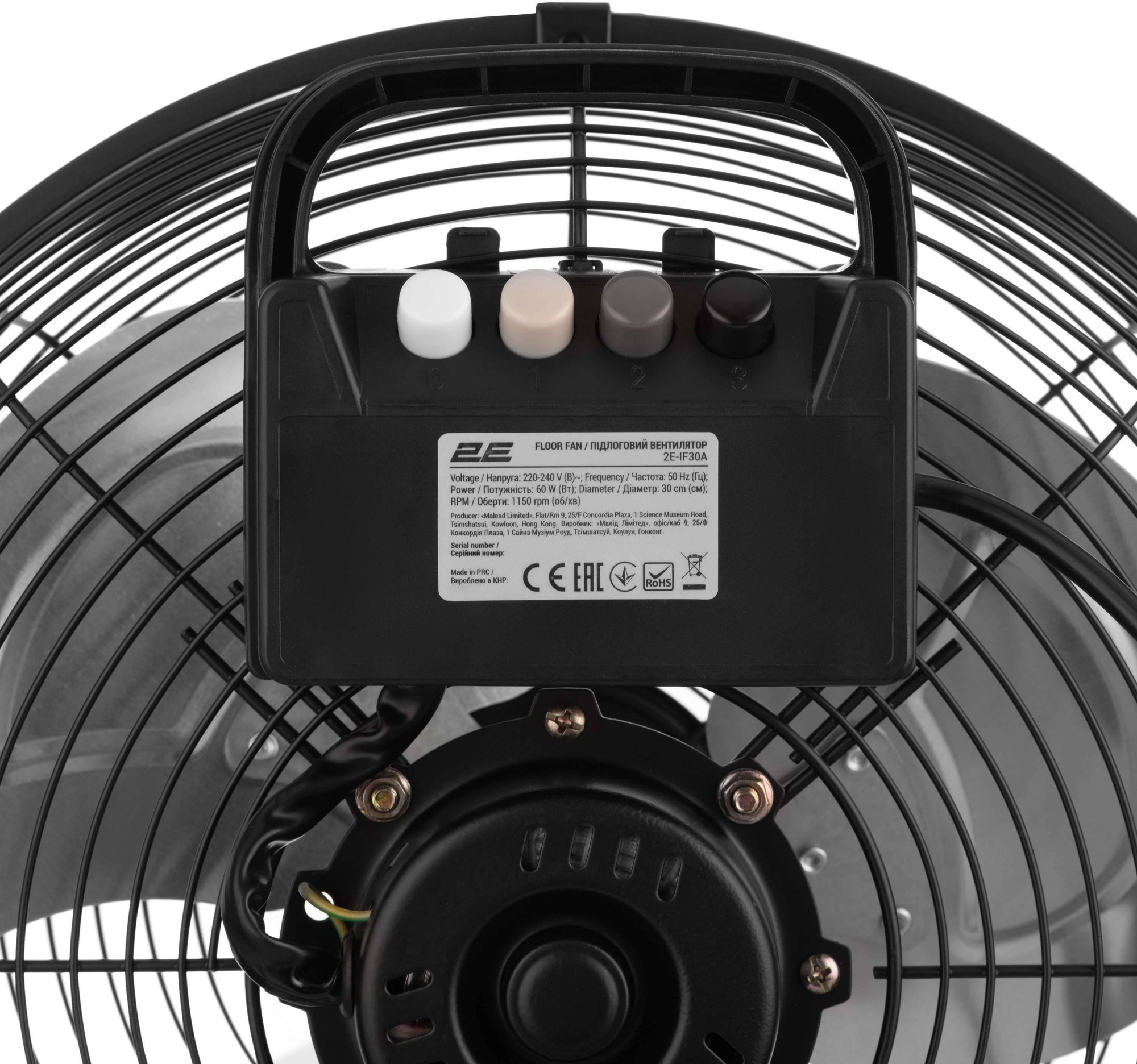 Підлоговий вентилятор 2E IF30A — це професійний пристрій, який поєднує сучасний стильний дизайн і високу функціональність для ефективного охолодження будь-якого приміщення. Потужність 60 Вт забезпечує достатню силу повітряного потоку, а діаметр лопатей у 30 см гарантує широкий розподіл повітря. Максимальна швидкість обертання становить 1150 об/хв, що дозволяє вентилятору швидко та ефективно охолоджувати кімнати різного розміру.