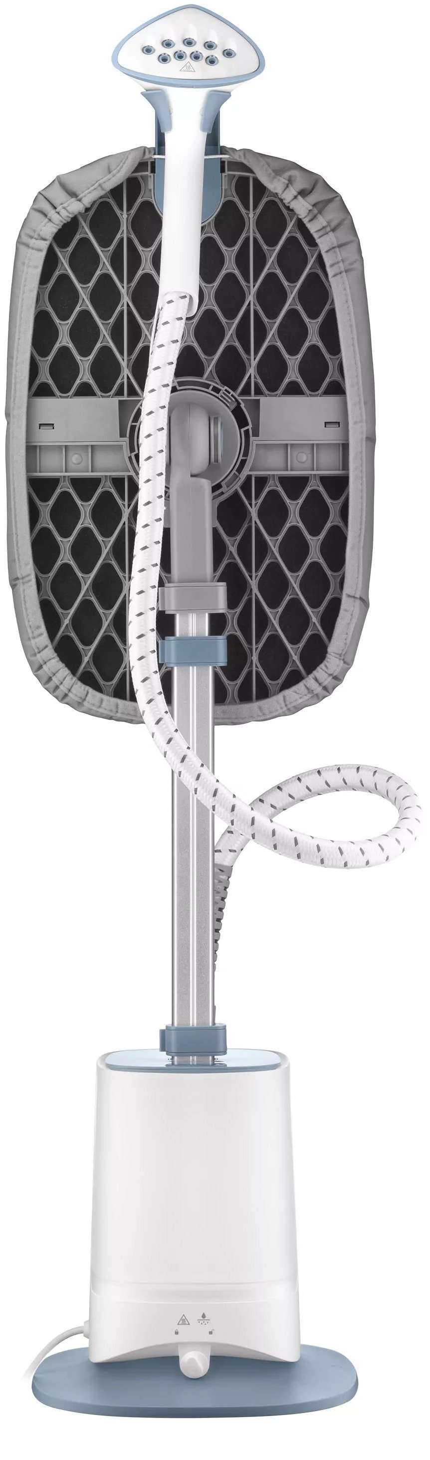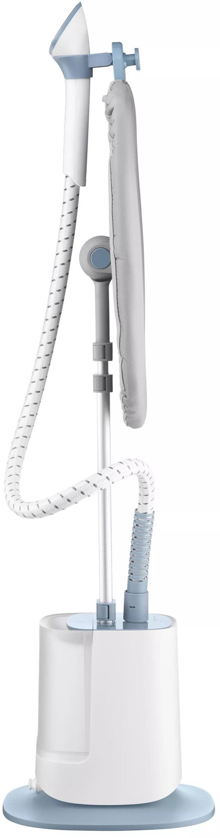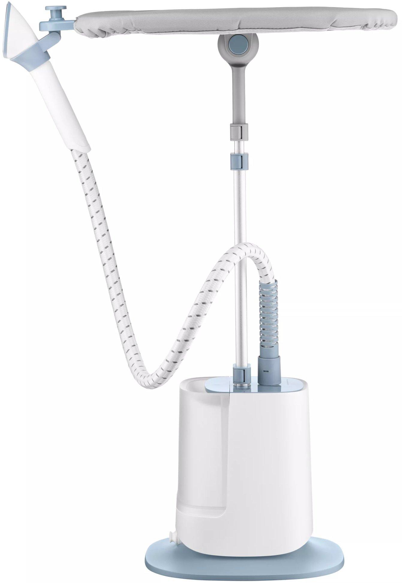 Для зручності користувача відпарювач оснащений регульованою по висоті стійкою (від 47 до 79 см), що дозволяє адаптувати пристрій під будь-який одяг. Додатково є обертаюча на 360° поверхня для прасування, яка спрощує роботу з речами різного крою. Гнучкий термостійкий шланг довжиною 1.25 м забезпечує свободу рухів та комфорт під час використання.