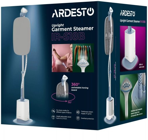 Вертикальний відпарювач Ardesto IR-S18B — це ідеальне рішення для тих, хто цінує швидкість, зручність і акуратний вигляд одягу щодня. Він поєднує у собі потужність, багатофункціональність та надійність, роблячи процес догляду за речами простим і приємним.