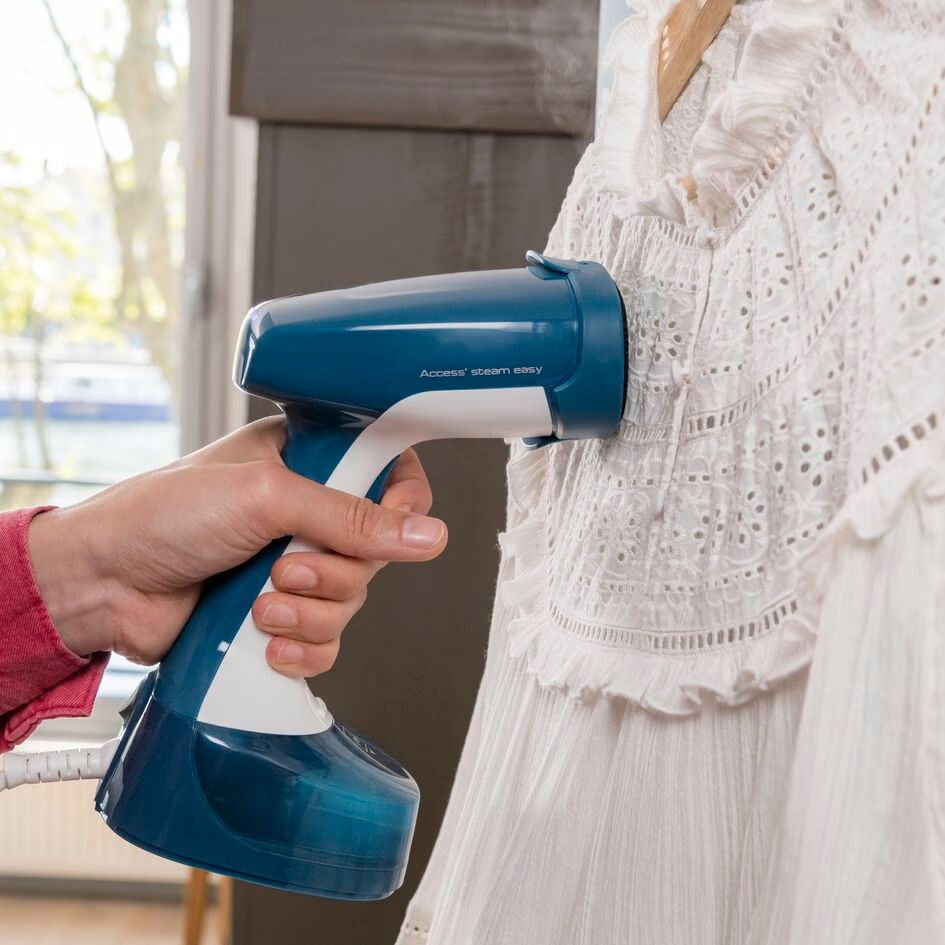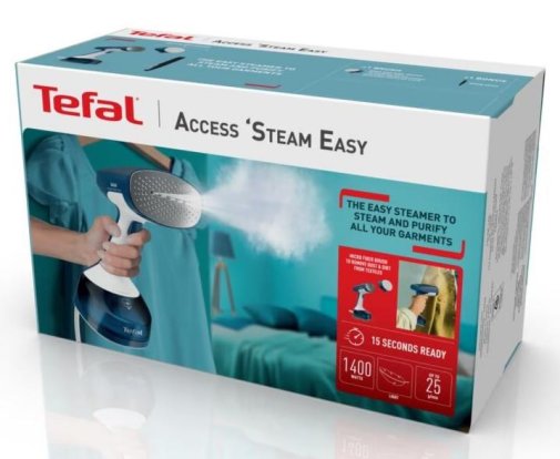 Ручний відпарювач Tefal Access Steam Easy призначений для догляду за різними типами тканин, навіть найделікатнішими, завдяки оптимальній постійній парі 25 г/хв і потужності 1300 Вт. Пристрій розігрівається дуже швидко — всього за 25 секунд, щоб ви могли швидко розгладити складки на одязі навіть перед виходом з дому.