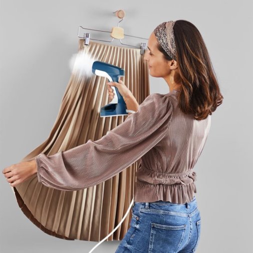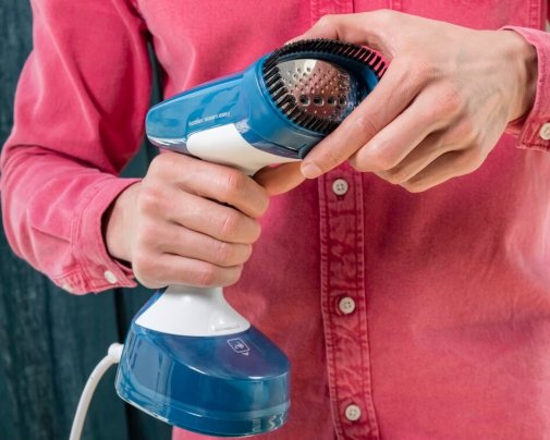 Пристрій зручний і безпечний у використанні: пара подається за натисканням кнопки, яка розташовується прямо під вказівним пальцем, широка основа забезпечує стійке вертикальне положення відпарювача, а функція автоматичного відключення через 10 хвилин бездіяльності запобігає перегріву та поломці пристрою. Завдяки компактному корпусові та невеликій вазі відпарювач комфортно використовувати та зручно зберігати або брати із собою у поїздку.