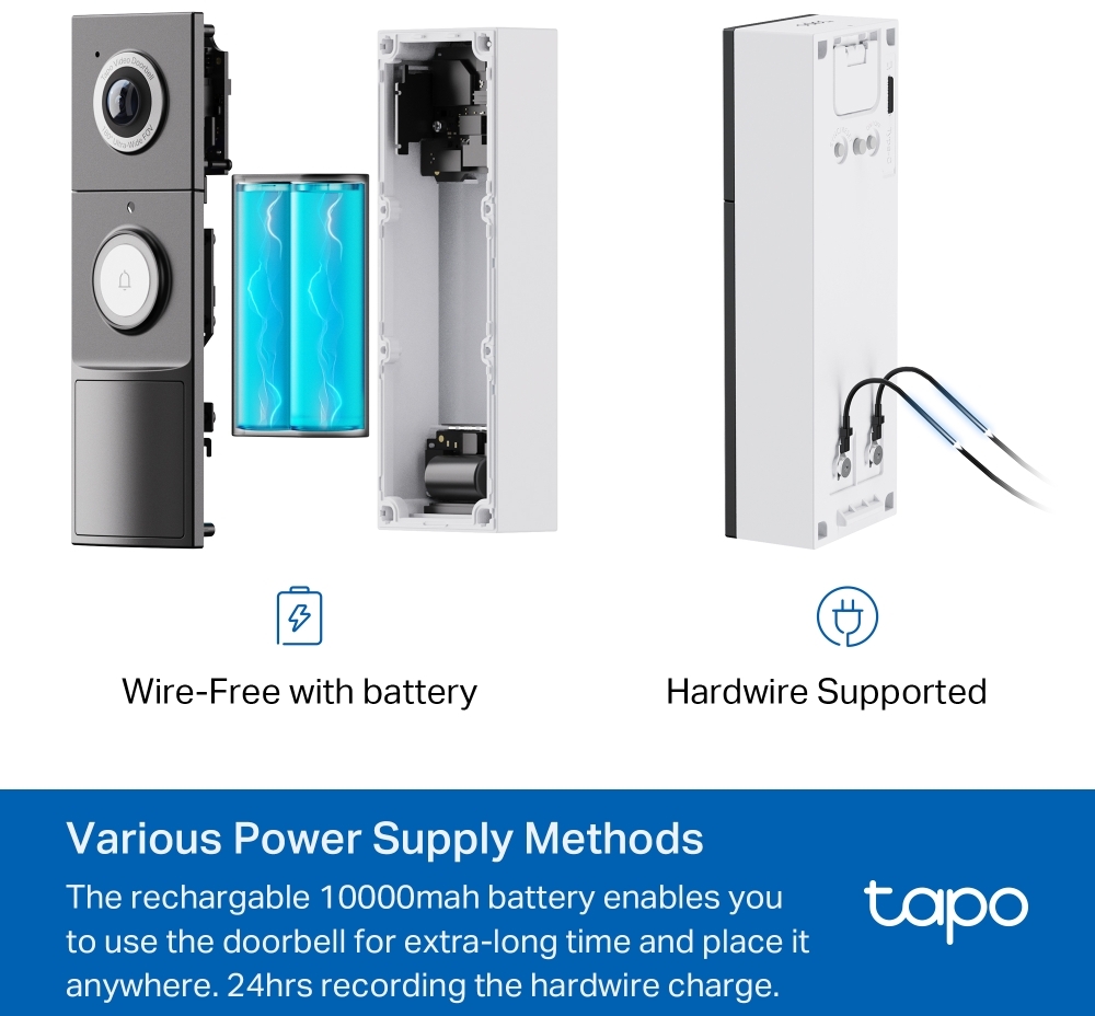 Пристрій пропонує гнучкі варіанти живлення завдяки акумулятору на 10 000 мАг забезпечує до 210 днів роботи, а дротове підключення гарантує безперервний запис 24/7. Tapo D235 стійкий до погодних умов завдяки захисту IP66, що робить його надійним вибором для використання на вулиці. Розумне виявлення на основі штучного інтелекту розпізнає людей, тварин, транспортні засоби та посилки, надсилаючи точні сповіщення через додаток Tapo.
