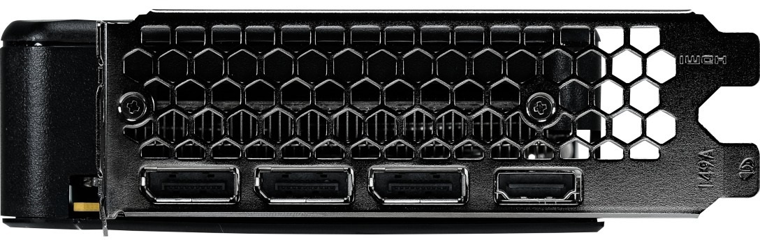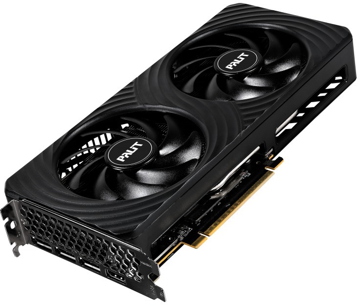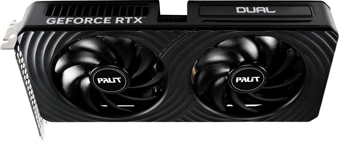 Система охолодження Palit GeForce RTX 5050 Dual OC оснащена двома 95-мм вентиляторами, які забезпечують ефективне охолодження при низькому рівні шуму. Вентилятори залишаються вимкненими під час низької температури (до ~60°C або TGP нижче ~150 Вт), забезпечуючи безшумну роботу в легких задачах.