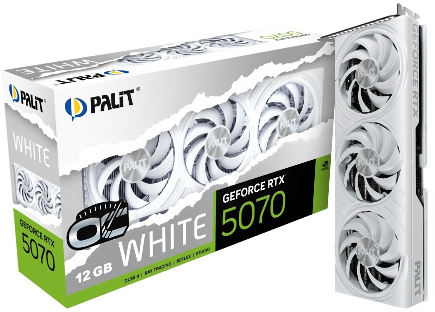 Відеокарта Palit GeForce RTX 5070 White OC — це високопродуктивне рішення для геймерів і творців контенту, яке поєднує стильний дизайн і передові технології NVIDIA Blackwell. Завдяки білому корпусу та задній панелі вона ідеально підходить для світлих ПК-збірок, забезпечуючи потужність і естетичну привабливість. Ця модель створена для роботи з AAA-іграми та вимогливими творчими задачами.