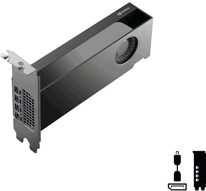 Для підключення доступні чотири mini-DisplayPort 2.1b, що підтримують до 8K при 240 Гц або 16K при 60 Гц з HDR. Компактний low-profile дизайн з гнучкістю форм-фактора робить її придатною для обмежених просторів, забезпечуючи енергоефективність і продуктивність для майбутніх AI-середовищ.