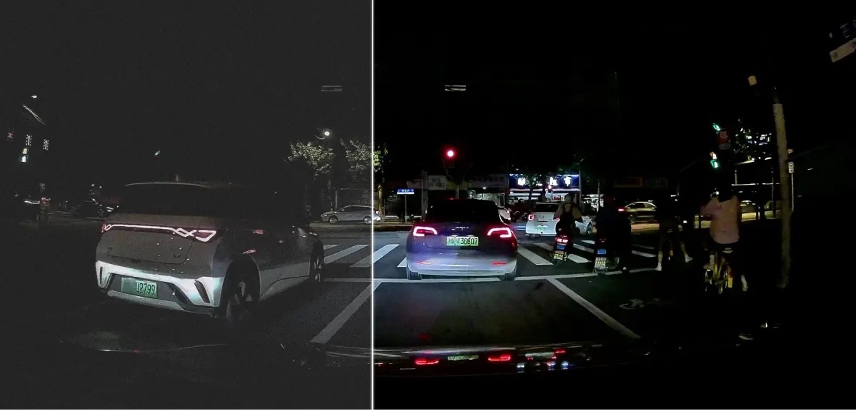 Запис ведеться у роздільній здатності 2560×1440P із кутом огляду 143°, що дозволяє охопити одразу кілька смуг дороги та фіксувати номерні знаки, дорожні знаки й інші важливі деталі з високою чіткістю. Завдяки об'єктиву з діафрагмою F1.55, технологіям Super Night Vision та WDR реєстратор забезпечує якісне зображення навіть у темряві — написи та номери залишаються добре читабельними вночі чи в умовах поганого освітлення.