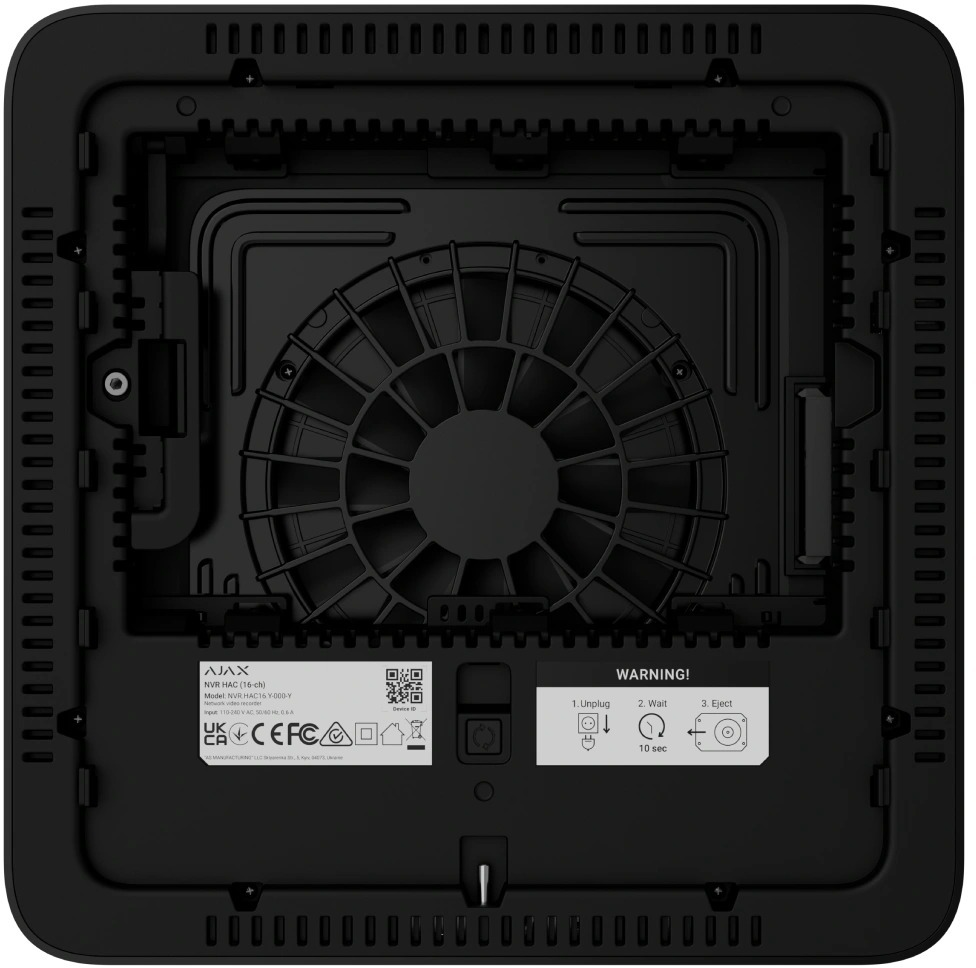 NVR H — це відеореєстратор для підʼєднання IP-камер сторонніх виробників, що підтримують протоколи ONVIF і RTSP, та камер Ajax. NVR H дає змогу встановити накопичувач з обсягом памʼяті до 16 ТБ (не входить у комплектацію NVR H). Також NVR H може працювати без жорсткого диска.