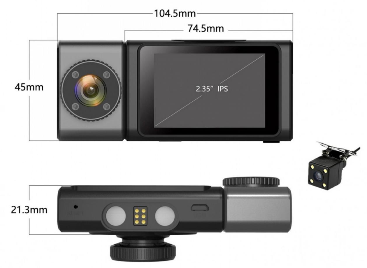 Використовувати відеореєстратор зручно завдяки компактному екрану 2.35″ IPS (320×240), на якому відображаються дата, час і держномер авто. Пристрій надійно працює у будь-яких умовах — від морозу –20°C до спеки +70°C.