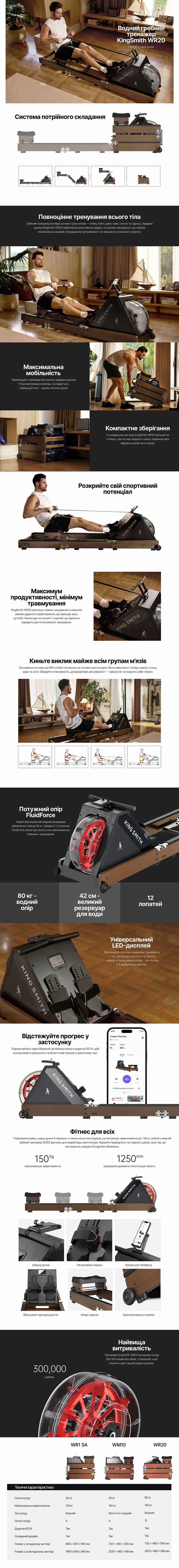 Водний гребний тренажер із системою потрійного складання KingSmith Water Rowing Machine WR20 Red Oak (RMWR20F)