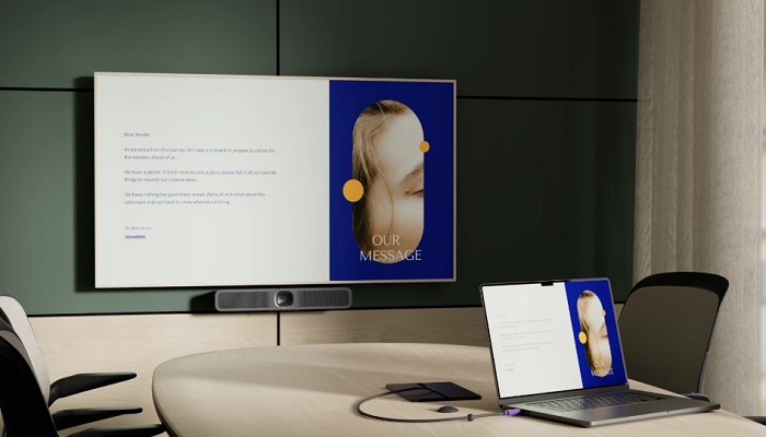 Підключення — USB-C (один кабель для відео, звуку та живлення) або Ethernet через адаптер для стабільності в корпоративних мережах. Підтримка Microsoft Teams, Zoom, Google Meet з сертифікацією — працює з коробки без додаткових драйверів. Пристрій підтримує як бездротове, так і дротове з'єднання, забезпечуючи гнучкість у виборі найбільш відповідного способу під'єднання залежно від конфігурації переговорної кімнати.