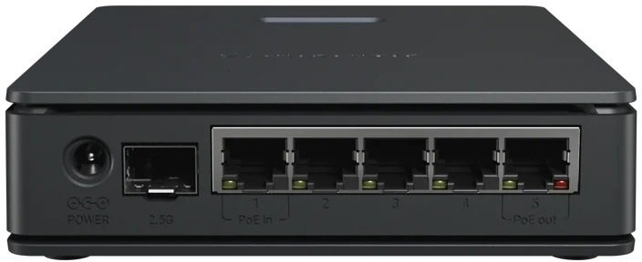 Апаратна частина включає потужний двоядерний ARM-процесор на 950 МГц з 512 МБ оперативної пам'яті, що забезпечує плавну обробку трафіку. П'ять гігабітних Ethernet-портів і один 2,5G SFP-порт дозволяють підключати швидкісні пристрої, як-от NAS чи оптоволокно. Гнучкі опції живлення спрощують установку, а PoE-вихід на одному порту дає змогу живити інші пристрої, зменшуючи кількість кабелів.