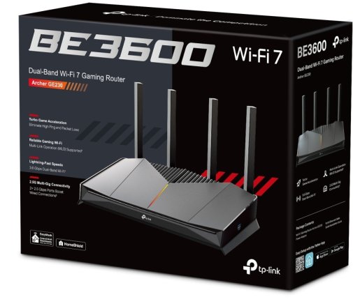TP-Link Archer GE230 — це потужний дводіапазонний ігровий маршрутизатор з підтримкою стандарту Wi-Fi 7, призначений для геймерів, які прагнуть максимальної швидкості та стабільності в домашній мережі. Цей пристрій пропонує загальну пропускну здатність до 3600 Мбіт/с, розподілену між діапазонами 5 ГГц (до 2882 Мбіт/с) та 2,4 ГГц (до 688 Мбіт/с), завдяки передовим технологіям, таким як Multi-Link Operation та 4K-QAM. Дизайн роутера натхненний перегоновими автомобілями, з динамічним RGB-підсвічуванням і ефективною системою охолодження, що не тільки додає естетики, але й забезпечує безперервну роботу під високим навантаженням. Ідеально підходить для ігрових сесій, Archer GE230 гарантує мінімальні затримки та плавний геймплей, роблячи його незамінним для сучасних користувачів.