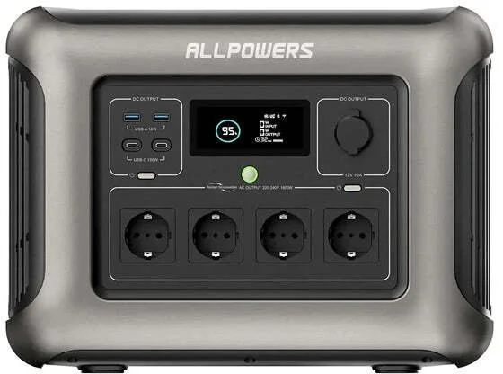 Allpowers R1500 — це потужна портативна електростанція місткістю 1152 Вт-год і вихідною потужністю 1800 Вт (з піковим навантаженням до 3000 Вт), яка забезпечує надійне резервне живлення в будь-яких умовах. Завдяки чистому синусоїдальному інвертору вона легко живить побутову техніку, освітлення, комп'ютери чи інструменти, дозволяючи не переривати повсякденне життя під час відключень електроенергії, планових ремонтів чи виїздів на природу.