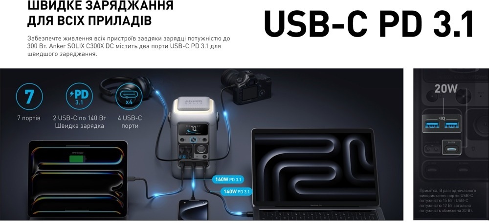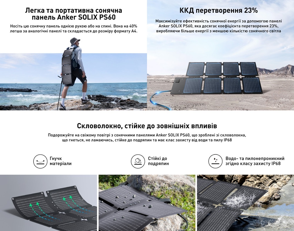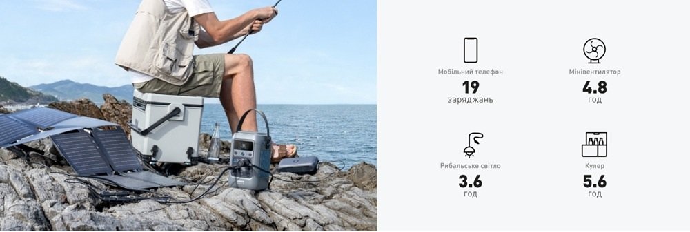 Anker Solix C300XDC 140W 288Wh + PS60 — це ідеальний вибір для тих, хто хоче отримати повну енергонезалежність у компактному форматі з можливістю сонячної зарядки. Якщо ви любите кемпінг, риболовлю, подорожі, часто стикаєтеся з відключеннями світла чи просто хочете бути готовими до будь-яких ситуацій — ця станція забезпечить стабільне живлення для ґаджетів, освітлення та невеликої техніки на довгі години. Потужна, мобільна, екологічна та дуже практична — саме те, що потрібно для активного життя.