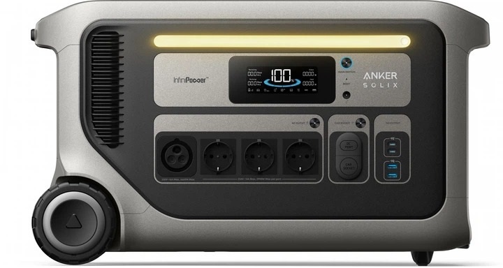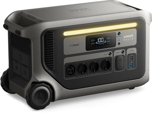 Зарядка від мережі становить до 3600 Вт, від сонячних панелей — до 2400 Вт через два незалежні входи (60 В та 165 В), що сумісні практично з будь-якими типами панелей. Управління здійснюється через застосунок Anker, де можна відстежувати стан заряду, налаштовувати розклад зарядки та режими роботи. Конструкція передбачає колеса та ручку у стилі валізи для зручного переміщення.