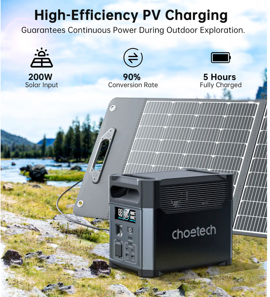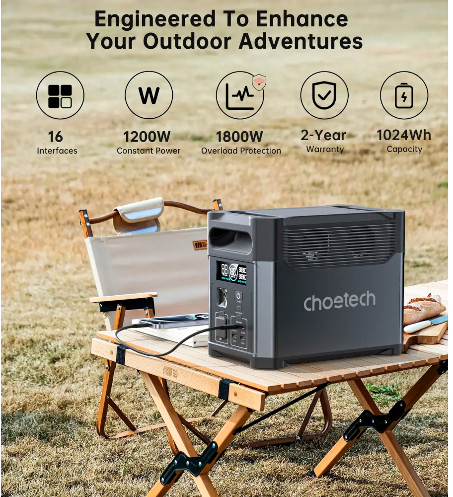 Choetech BS061-BQB — зарядна станція, з якою ви ніколи не залишитеся без електроенергії. Завдяки високій потужності 1200 Вт дозволить зарядити більшість портативних пристроїв, стане чудовим варіантом для кемпінгу та надійним помічником під час тривалих вимкнень світла.
