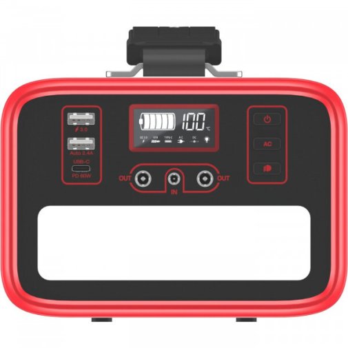 РК-дисплей чітко відображає рівень заряду акумулятора та внутрішню робочу температуру. Завдяки цьому користувач може легко стежити за станом станції в реальному часі. Компактні розміри та вага 4.46 кг, а також ручка для перенесення, роблять пристрій зручним для транспортування. Станцію можна заряджати від електромережі за допомогою комплектного кабелю — повне заряджання займає близько 6 годин.