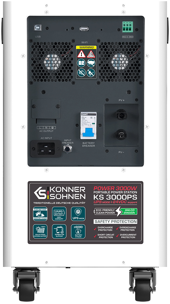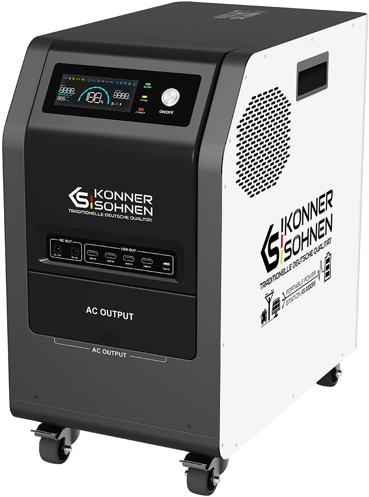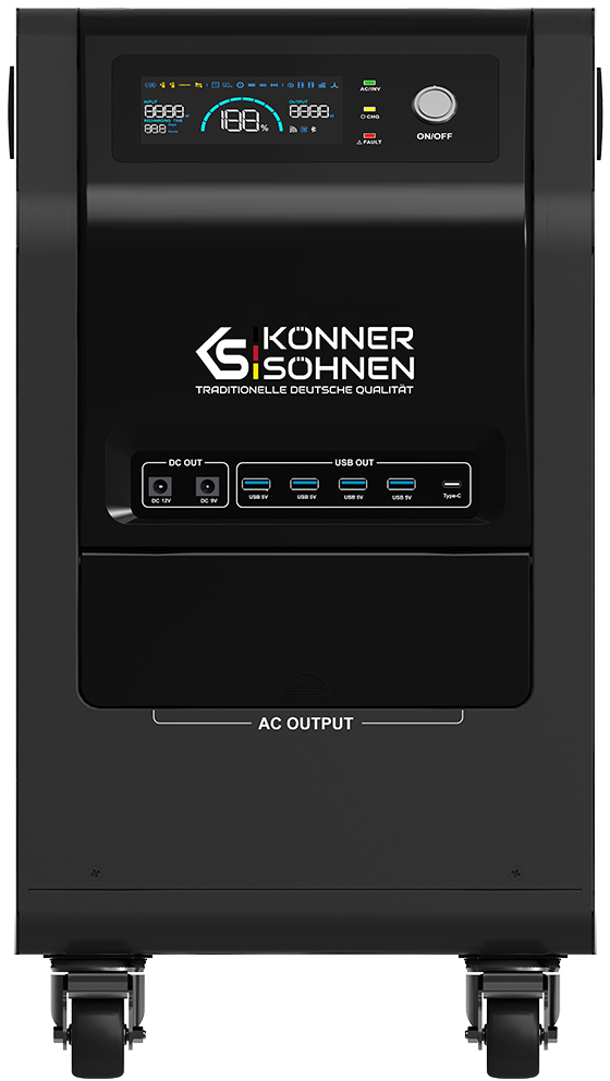 Зарядна станція Konner & Sohnen KS 3000PS 3000W — це потужний і надійний портативний енергетичний центр, створений спеціально для повної енергонезалежності в домашніх умовах, на дачі, під час відключень електроенергії, кемпінгу, риболовлі чи використання в польових умовах. Ця модель ідеально підходить для живлення побутової техніки, інструментів, освітлення, холодильників, телевізорів, кавоварок, обігрівачів чи навіть невеликих електроінструментів без підключення до розетки.