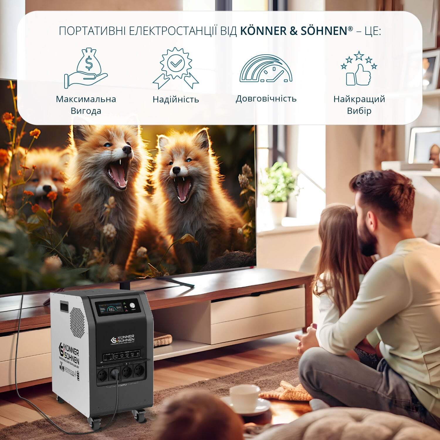 Konner & Sohnen KS 3000PS — це вибір тих, хто хоче отримати максимальну автономність, потужність і чисту синусоїду для чутливої техніки в одному пристрої. Якщо ви часто стикаєтеся з відключеннями світла, любите кемпінг, риболовлю чи просто хочете бути готовими до будь-яких ситуацій — ця станція забезпечить стабільне живлення для ґаджетів, побутової техніки та інструментів на довгі години чи навіть дні. Потужна, мобільна, надійна та дуже практична — саме те, що потрібно для сучасного життя.