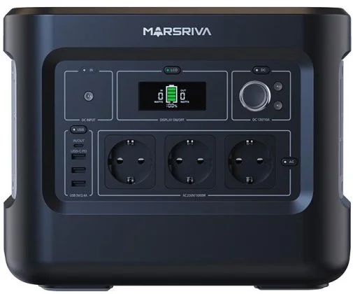 Marsriva MP10 — мініелектростанція потужністю 1000 Вт, оснащена акумулятором LiFePO4, який забезпечить довгий термін служби пристрою. Завдяки наявним різним видам роз'ємів модель можна використовувати для підтримання рівня заряду необхідної техніки під час відсутності доступу до розетки чи аварійного відключення світла.