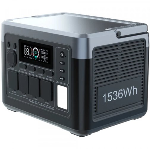 Станція виглядає надійно й сучасно, з LiFePO4-батареєю місткістю 1536 Вт-год, що гарантує понад 4000 циклів заряду до 80 % місткості — це понад 10 років служби навіть при щоденному використанні. Номінальна потужність 1800 Вт (пік до 3600 Вт) з чистою синусоїдою дозволяє живити майже будь-яку побутову техніку — від кавоварки до невеликого компресора, а UPS-режим з перемиканням за 10 мс захищає чутливу електроніку від раптових відключень.