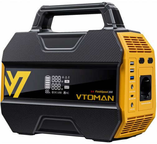 Vtoman FlashSpeed 300 — це компактна та портативна зарядна станція потужністю 300 Вт з місткістю батареї 230 Вт-год, ідеальна для подорожей, кемпінгу, роботи на віддаленні чи як резервне живлення вдома. Вона дозволяє одночасно заряджати до шести пристроїв, забезпечуючи надійну енергонезалежність у будь-яких ситуаціях.
