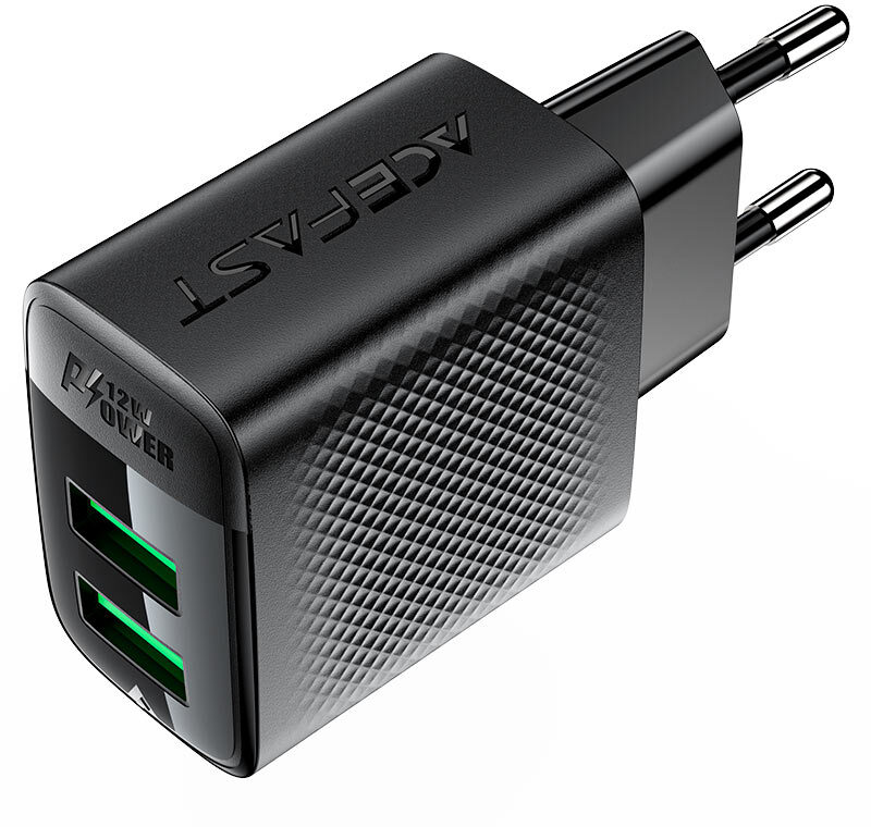 Зарядний пристрій Acefast A86 — це надійний і компактний адаптер для щоденного заряджання ваших пристроїв. Пристрій оснащений двома портами USB-A, що дозволяє одночасно заряджати два гаджети, хай то смартфони, планшети або навіть невеликі ігрові консолі. Потужність пристрою становить 12 Вт, що забезпечує швидку і стабільну зарядку більшості сучасних мобільних девайсів.