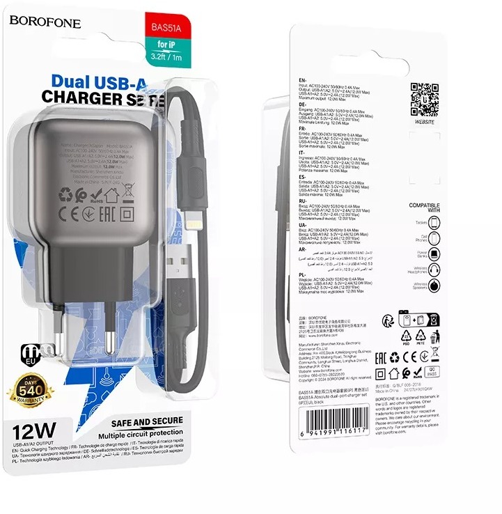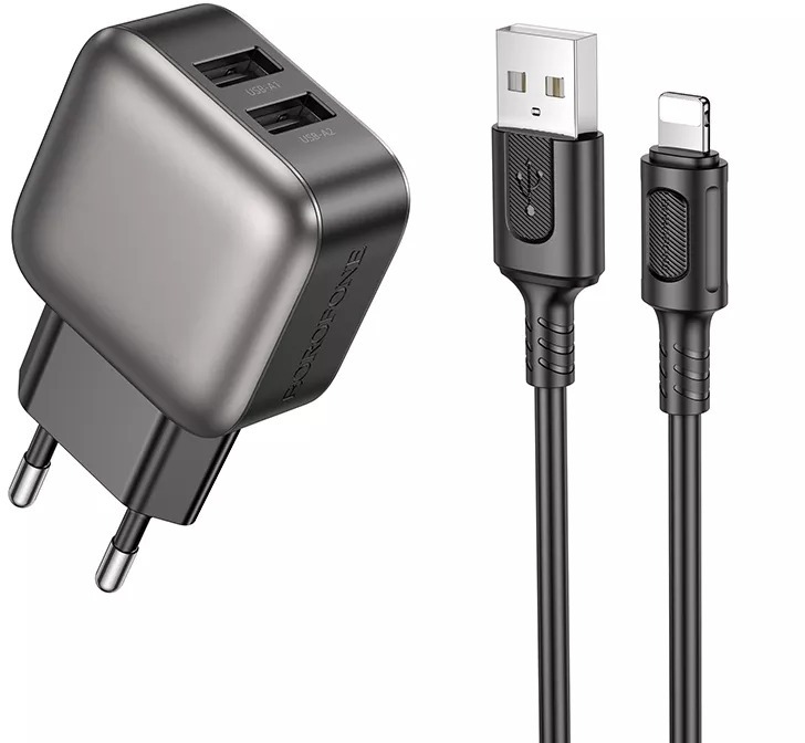 Сучасний зарядний пристрій Borofone BAS51A Absolute — це компактне та потужне рішення для стабільної зарядки ваших ґаджетів. Оснащений двома портами USB Type-A, завдяки чому він здатний заряджати два пристрої одночасно. В комплекті є кабель Lightning.