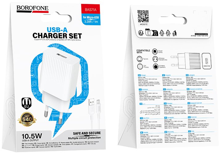 BOROFONE BAS71A Source — це компактний і надійний мережевий зарядний пристрій з одним USB-портом та кабелем AM/MicroB, призначений для повсякденної зарядки різноманітних гаджетів.