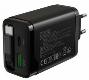 Вбудований кабель USB-C довжиною витримує до 60 Вт і завжди під рукою — більше не треба шукати окремий кабель у сумці. Додатковий порт USB-C видає до 65 Вт, а USB-A — до 30 Вт, тож одночасно можна швидко заряджати три пристрої. Інтелектуальна система сама розподіляє потужність, щоб кожен гаджет отримував максимальну швидкість без перегріву.