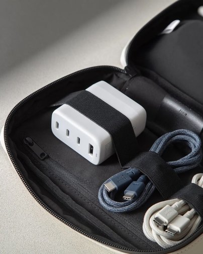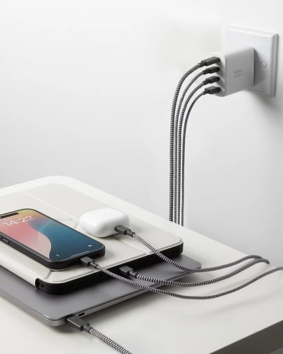 Пристрій оснащено чотирма універсальними портами — трьома USB-C та одним USB-A — що дозволяє одночасно живити ноутбук, планшет, смартфон та аксесуари, замінюючи кілька окремих зарядних блоків одним компактним рішенням. Розумна технологія PPS (Programmable Power Supply) динамічно регулює напругу під потреби підключених пристроїв, підтримуючи, зокрема, Samsung Super Fast Charging 2.0 45W.
