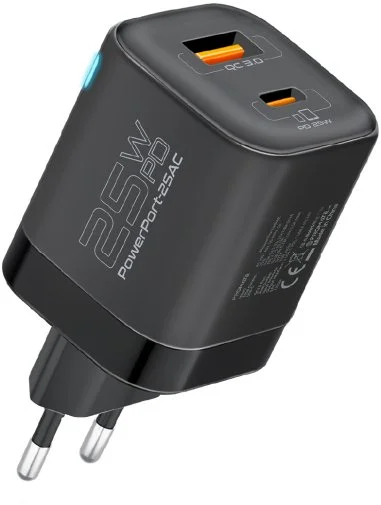 Підтримка технологій Power Delivery та Quick Charge 3.0, максимальна безпека та ультракомпактний формфактор. Promate PowerPort-25AC з легкістю зарядить будь-який гаджет на потужності 25W через USB-C та USB-A порт.