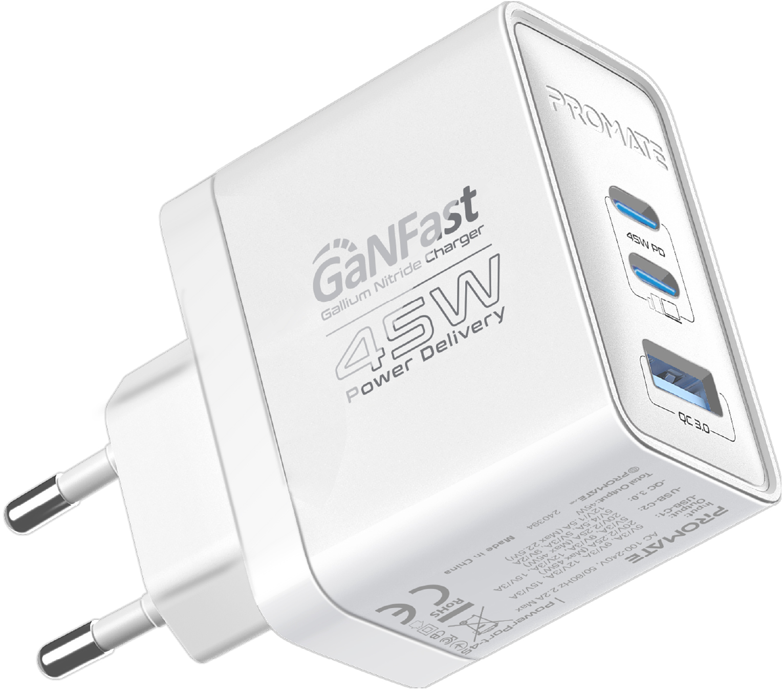 Promate PowerPort-45 - об'єднав в собі всі переваги GanFast технології — неймовірну потужність, високу енергоефективність й ультракомпактність. Почни користуватися технологіями завтрашнього дня вже сьогодні