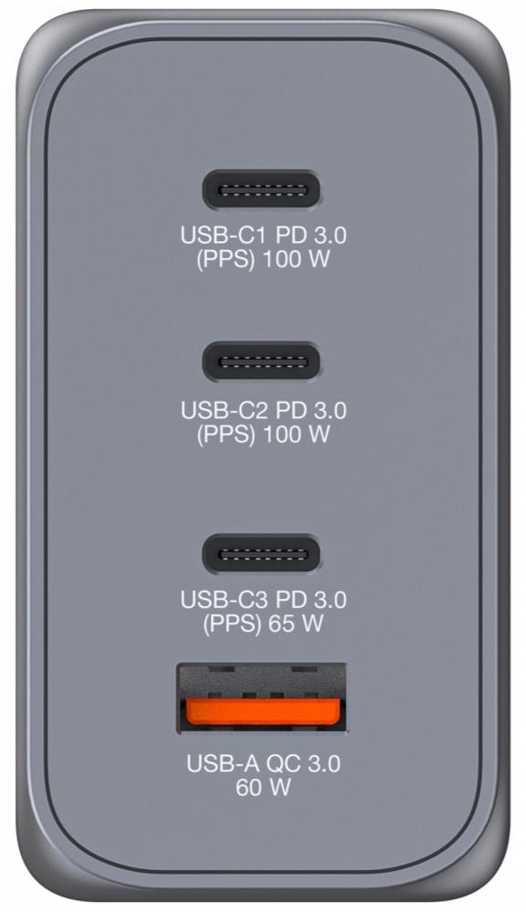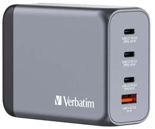 Зарядний пристрій Verbatim 200W 4-Port GaN Wall Charger — це потужний і сучасний пристрій, який дозволяє одночасно заряджати до чотирьох гаджетів з загальною потужністю до 200 Вт. Він оснащений двома портами USB-C з підтримкою Power Delivery 3.0 по 100 Вт кожен, одним USB-C PD на 65 Вт та одним USB-A з технологією Quick Charge 3.0 до 60 Вт. Завдяки використанню передової технології GaN (нітрид галію) зарядка відбувається надзвичайно ефективно, з мінімальним нагріванням, а сам пристрій виходить компактним, легким і значно меншим за традиційні зарядні пристрої аналогічної потужності.
