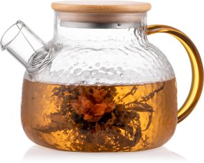 Заварник ARDESTO Gemini Dew – елегантний аксесуар для любителів чаю, який виготовлено з термостійкого боросилікатного скла. Він є втіленням елегантності та практичності, тоді як бамбукова кришка додає природного шарму. Об’єм – 1 000 мл, прозорий дизайн із рифленою поверхнею надає змогу насолоджуватись процесом заварювання, а завдяки максимальному діаметру 14 см і висоті 12 см забезпечено зручність використання. Заварник сумісний із різними видами плит, зокрема газовими, електричними та склокерамічними, його можна нагрівати на помірному вогні, адже діапазон термостійкості – від -20 до +150 °C. Легкий догляд гарантовано завдяки можливості миття в посудомийній машині (без бамбукової кришки).