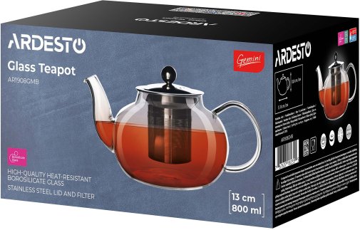 Заварник виготовлено з екологічного матеріалу – боросилікатного скла, яке не вбирає запахи, тому смак чаю завжди залишатиметься незмінним. Матеріал вирізняється міцністю і стійкістю до перепадів температури, тож тривалий термін слугування та безпечне використання виробу гарантовано. Об’єм моделі з фільтром із нержавіючої сталі становить 800 мл. Це ліпший вибір для чаювання всієї родини чи компанії друзів. Заварник сумісний із різними видами плит – газовими, електричними, склокерамічними, галогенними. Його можна підігрівати на помірному вогні та мити в посудомийній машині.