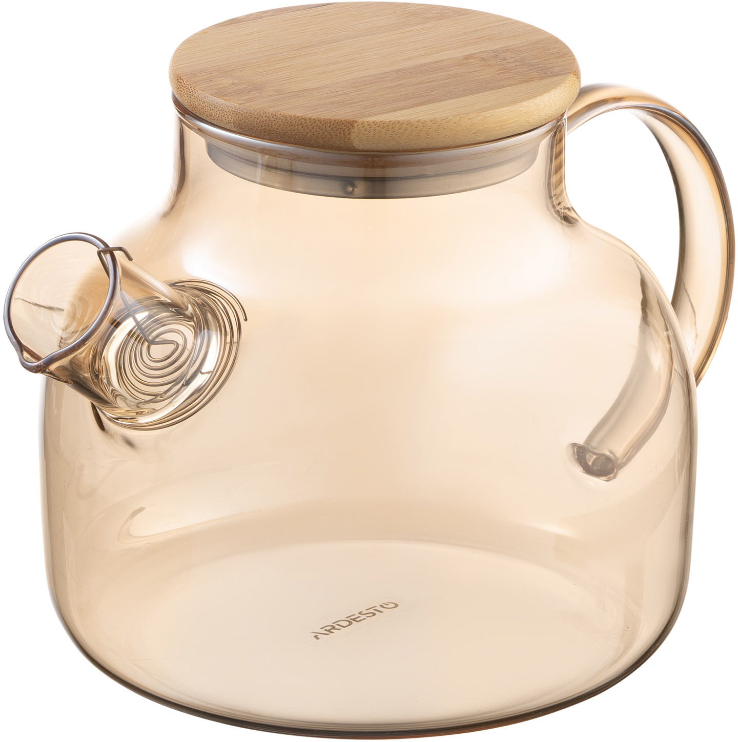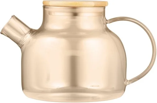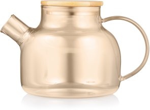 Заварник виготовлено з екологічного матеріалу – боросилікатного скла, яке не вбирає запахів, тому смак напою завжди залишатиметься незмінним. Матеріал вирізняється міцністю і стійкістю до перепадів температури, тож тривалий термін слугування і безпечне використання виробу гарантовано. Бамбукова кришка та золотистий відтінок скла додають виробу вишуканості. Об’єм моделі становить 1 000 мл. Це ліпший вибір для сімейних обідів, вечірок із друзями або для використання в офісі. Заварник згодиться для різних видів плит (газових, електричних, склокерамічних, галогенних), його можна підігрівати на помірному вогні та мити в посудомийній машині (крім бамбукової кришки).