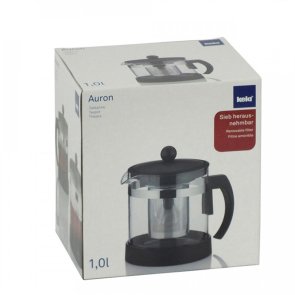 Елегантний чайник для заварювання KELA Auron виготовлений з термостійкого скла зі вставкою-ситом з нержавіючої сталі, має в оформленні пластикові елементи. Висота - 16 см. Об'єм – 1 л.