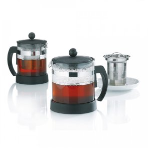 Скляний чайник для заварювання з не скляною ручкою KELA AURON від провідного німецького виробника посуду та начиння для кухні KELA, має всі переваги скляного варіанту, але більш зручний у використанні. Крізь скляні стінки ви зможете милуватися за чарівним видовищем заварювання чаю, як листя розгортається під впливом води, віддаючи напою свій аромат та колір. Разом з тим, зручна пластикова ручка та кришка, зроблять його більш функціональним і простим у використанні. Чайник також оснащений знімним ситечком для заварки з нержавіючої сталі 18/10, що дозволить відокремити заварку від напою, а зручний носик дозволить налити чай в чашку не проливши ні краплі мимо.