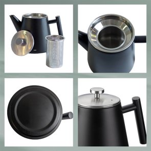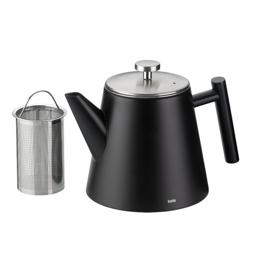 Чайник заварювальний KELA Modena об'ємом 1 літр - це поєднання елегантного дизайну та практичності в кожному елементі. Його лаконічний чорний колір надає аксесуару сучасного і витонченого вигляду, роблячи його не тільки функціональним посудом, а й прикрасою кухонного інтер'єру. Чайник ідеально підійде для заварювання улюблених сортів чаю, трав чи ягідних сумішей.