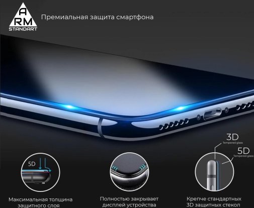 Захисне скло ArmorStandart 3D має вищу міцність, ніж інші типи захисного скла, завдяки своїй товщині.