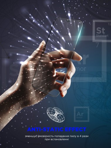 Скло оснащене клейовою основою Premium AB Glue, що забезпечує легке встановлення без утворення бульбашок, а також дозволяє багаторазове переклеювання (до 20 разів) за необхідності. Функція Anti-dust зменшує ризик потрапляння пилу під час поклейки скла.