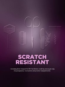 - Hardness coating - додатковий захист від подряпин і гострих предметів;