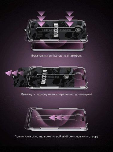 Захисне скло ArmorStandart Black Icon Supreme EZ комплектується зручним аплікатором, який значно полегшує процес установки. Завдяки йому ви зможете точно розмістити скло на дисплеї, уникнувши перекосів і повітряних бульбашок. Це робить наклеювання швидким і комфортним навіть для користувачів без досвіду, забезпечуючи ідеальний результат з першого разу.