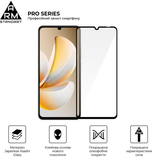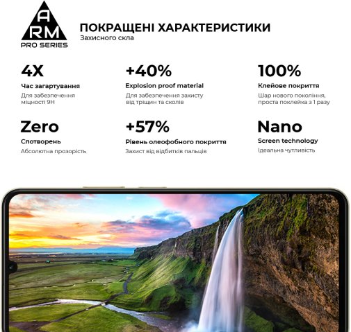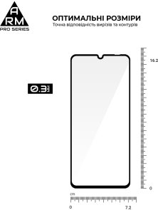 Захисне скло Armorstandart Pro Series має оптимальні габарити та товщину 0,3 мм. Передбачено вирізи під усі датчики, камери та роз'єми.