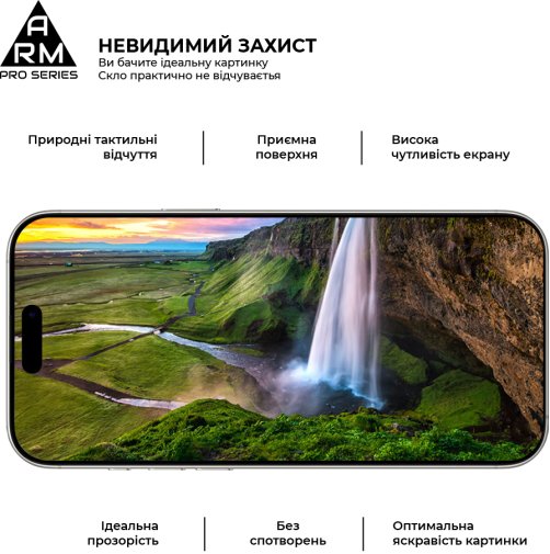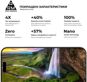 Захисне скло Armorstandart Pro Series має оптимальні габарити та товщину на 0,3 мм. Передбачено вирізи під усі датчики, камери та роз'єми.
